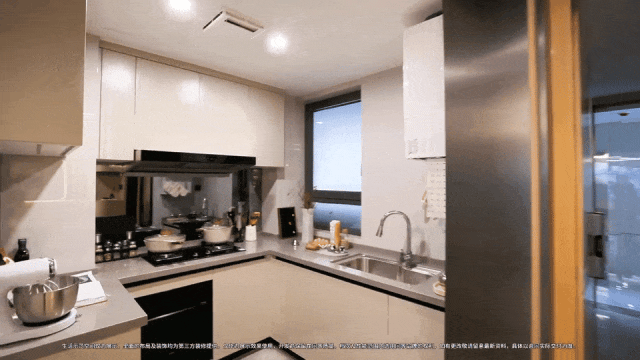 多层实木复合地板,质感在线;厨房内的洗碗机、凉霸等设备也都在交付范畴,诚意十足。