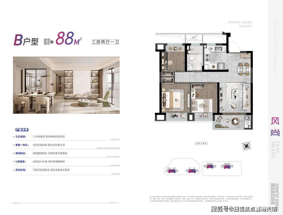 深嘉上府主力户型为建面约88㎡、99㎡的三房,整体布局没有过度“炫技”,但结构扎实,更注重空间的合理分配与功能的均衡性