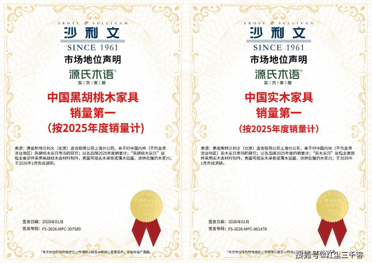 随着消费品质化升级与“悦己型”家居需求崛起,中国实木家具市场正迎来结构性增长浪潮。其中,实木家具整体赛道与黑胡桃木细分赛道双线扩容,成为拉动行业增长的核心动力。据第三方权威调研机构弗若斯特沙利文(北京)咨询有限公司上海分公司发布的《2025中国实木家具行业消费趋势报告》显示,2025年中国实木家具整体市场规模突破800亿元,年复合增长率达15.2%;黑胡桃木家具作为高端细分品类,市场规模同步攀升至213亿元,年复合增长率高达19.8%。值得关注的是,90后、00后消费群体占比超62%,“颜值与实用兼顾”“材质保真与环保并重”成为主流需求。在此趋势下,源氏木语(YESWOOD)凭借全链路运营能力与对消费需求的精准洞察,一举斩获2025年度“中国黑胡桃木家具销量第一”与“中国实木家具销量第一”双桂冠,成为行业首个实现细分赛道与整体品类双线领跑的品牌。