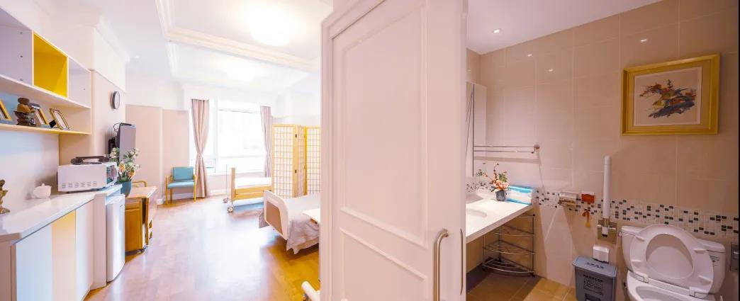 · 居室配置沿墙连续L型扶手、高级电动护理床、专业呼叫及生命体征监控床垫,独立无障碍卫生间实现干湿分离,全方位保障居住安全与舒适。