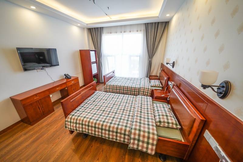 北京市朝阳区东坝福寿苑养老照料中心主体楼共三层,设单人间、标准间、豪华间共176个房间,房型选择多样。房间配备独立卫生间、液晶数字电视、PM2.5新风系统、智能床垫、应急呼叫系统、温湿度监测、24小时热水循环系统等全套适老化设施,兼顾舒适性与智能化。配套500平米老人休闲娱乐广场,内设自动麻将机、书法绘画区、阅览室、音乐广场、乒乓球桌、台球桌、康复健身器材等,有专业护理团队人员协助使用,保障活动安全。