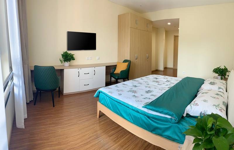 环境特色·自然惬意北京市海淀区国利来养老照料中心总占地约5000平方米,建筑面积3100平方米,配套近3000平米露天花园,绿植环绕、空气清新,是长者散步休闲、亲近自然的绝佳场所。室内配备高档纯实木家具,中央空调调节适宜温度,每个房间均设独立卫生间,24小时热水供应,居住体验兼具舒适与质感。