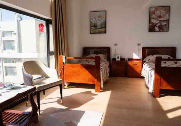 :北京市朝阳区观音堂益康养老院规划床位300余张,其中中高档客房280间,室内外设施齐全,兼顾居住舒适度与休闲娱乐需求。每间客房均配备24小时热水,室内装修雅致,搭配完善的生活设施,营造居家般的温馨氛围;室外休闲区域绿意环绕,可满足长者散步、聊天、晒太阳等日常需求,休闲娱乐一体化。