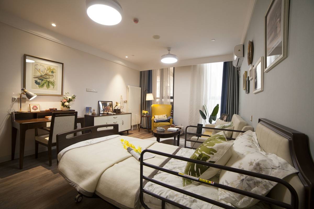 虽然收费亲民,但吉祥苑的硬件设施丝毫没有缩水。公寓占地面积8600平米,建筑面积5900平米,规划130间客房,空间宽敞不拥挤。房间内实木家具、电视、电话、冰箱、写字桌等设施一应俱全,实木地板环保安全,搭配定制电动护理床、棕垫床垫、纯棉床上用品及全荞麦皮枕头,兼顾舒适度与实用性。安全设施方面,床头及卫生间语音呼叫系统、独立无障碍卫生间、智能冲洗马桶、24小时热水等均为标配,全方位保障老人居住安全。此外,全楼无线WiFi覆盖、新风系统、冬季地暖、夏季中央空调等设施,为老人营造了便捷、舒适的居住环境,这些配置在同价位养老机构中极具优势。