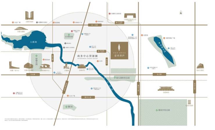 政务东板块的核心价值,在于其 “衔接政务、联动滨湖、辐射高新” 的战略区位 —— 向西无缝对接政务区天鹅湖 CBD,共享合肥最优质的商业、金融、文化资源;向东紧邻滨湖新区,承接科创、文旅产业外溢;向北联动高新区,共享高新技术产业红利。而意禾澄庐正处于这一战略区位的 “核心节点”,具于习友路与科学大道交汇处,习友路作为合肥 “东西大动脉”,串联起政务、滨湖、高新三大核心板块;科学大道作为 “南北主干道”,衔接蜀山、经开两大城区,区位优势得天独厚。